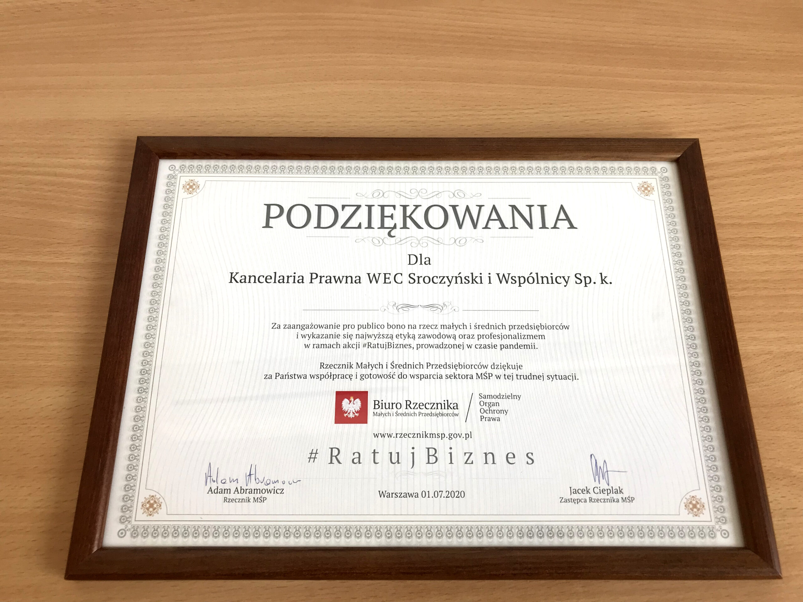 W tym miejscu chcielibyśmy przypomnieć o naszym zeszłorocznym wyróżnieniu #RatujBiznes, które otrzymaliśmy od Biura Rzecznika Małych i Średnich Przedsiębiorców.